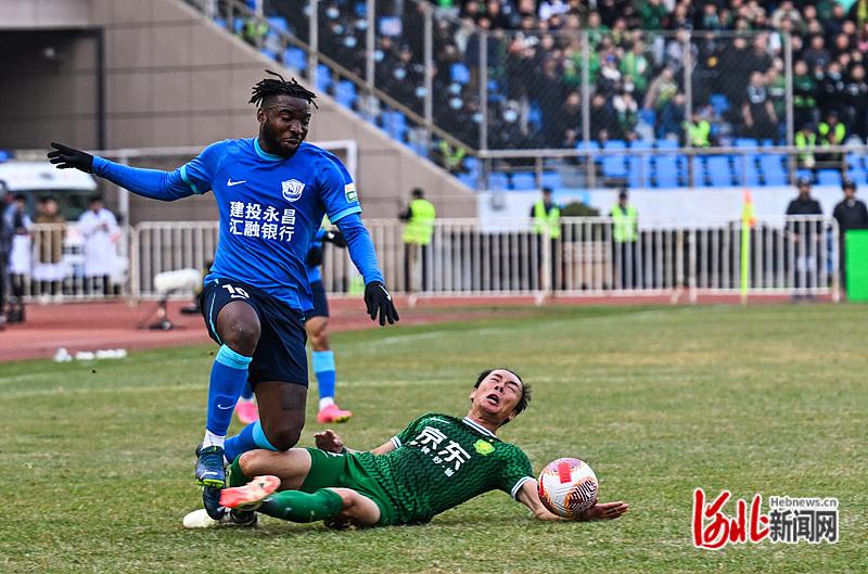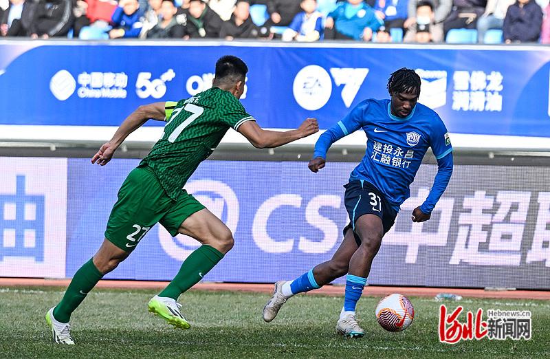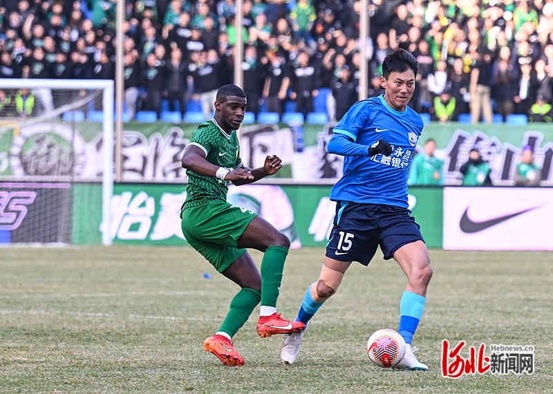 图为沧州雄狮中后卫王鹏从容不迫。 河北日报记者耿辉摄