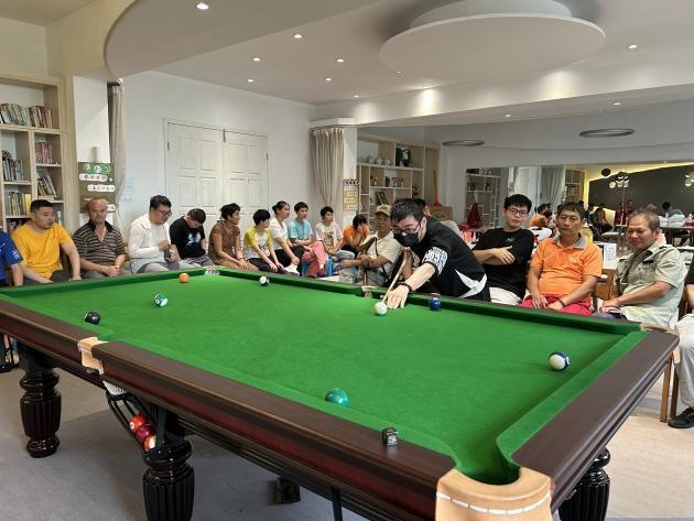 此次台球比赛从计划到落地,耗时半个月,机构工作人员通过线上邀约与线下走访两种方式,最终确定了8位残疾人参与比赛。比赛之前,裁判宣读比赛规则——中式台球(8球制台球)规则,使用十六彩球,根据开球的情况决定目标球花色,打进七个目标球后打进八号球取得胜利。母球落袋罚球一颗,误打进八号球罚球两颗。规定比赛方式为淘汰赛,利用抓阄的方式分组,两两对决,采取八进四,四进二,决赛赛程。