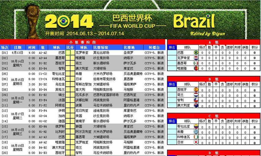 1994年世界杯赛程表及结果如下: